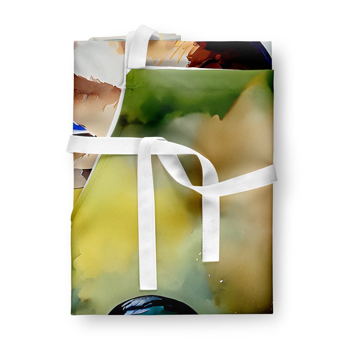 Apron featuring breed specific Mallard artwork. Elevate your cooking, baking, and grilling experiences with our versatile Kitchen or BBQ Apron. This Bib Style apron isn't just limited to culinary activities - it also serves as an excellent baking apron, artist apron, server apron, gardening apron, or even a dog grooming apron. The apron showcases vibrant full-color artwork contributed by one of our talented artists, bringing a dash of style to your daily tasks. With dimensions of approximately 27"W x 30"H, it provides ample coverage to protect your clothing from spills and splashes. Our apron is meticulously crafted from 100% Ultra Spun Polyester, known for its durability and lightweight nature. The apron comes with white tie straps, ensuring a comfortable and adjustable fit for all. It's a perfect choice for kitchen apron enthusiasts, whether you are a woman or a man. Designed for easy maintenance, this apron is fully machine washable. The quick-drying polyester material actively reduces staining, keeping your apron looking fresh and new for longer. Our beautifully designed apron isn't just a functional kitchen accessory - it's a fashion statement in the culinary world!